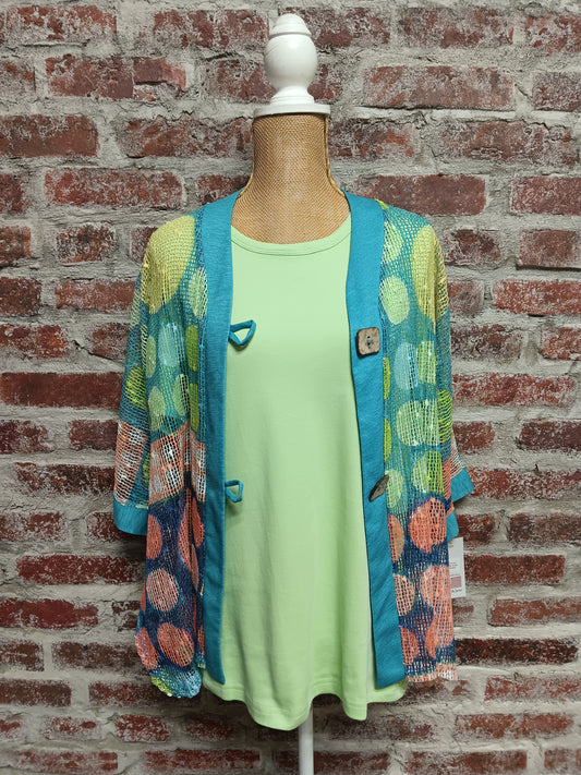 Multicolored Printed Mesh Cardigan With Two Button Closure