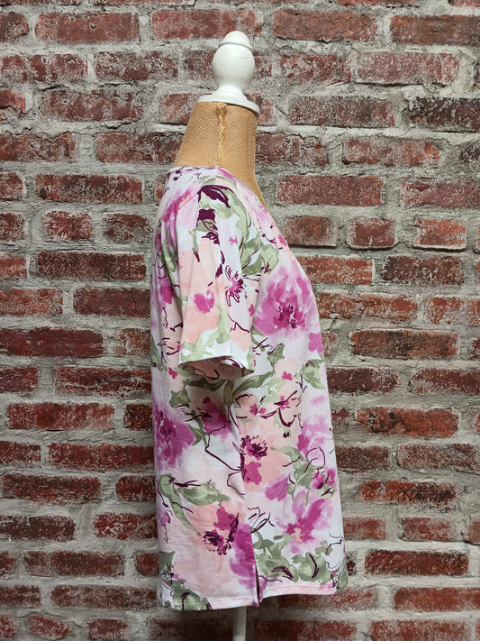 Aqua and French Blue Block Pattern 3/4 SLV Top