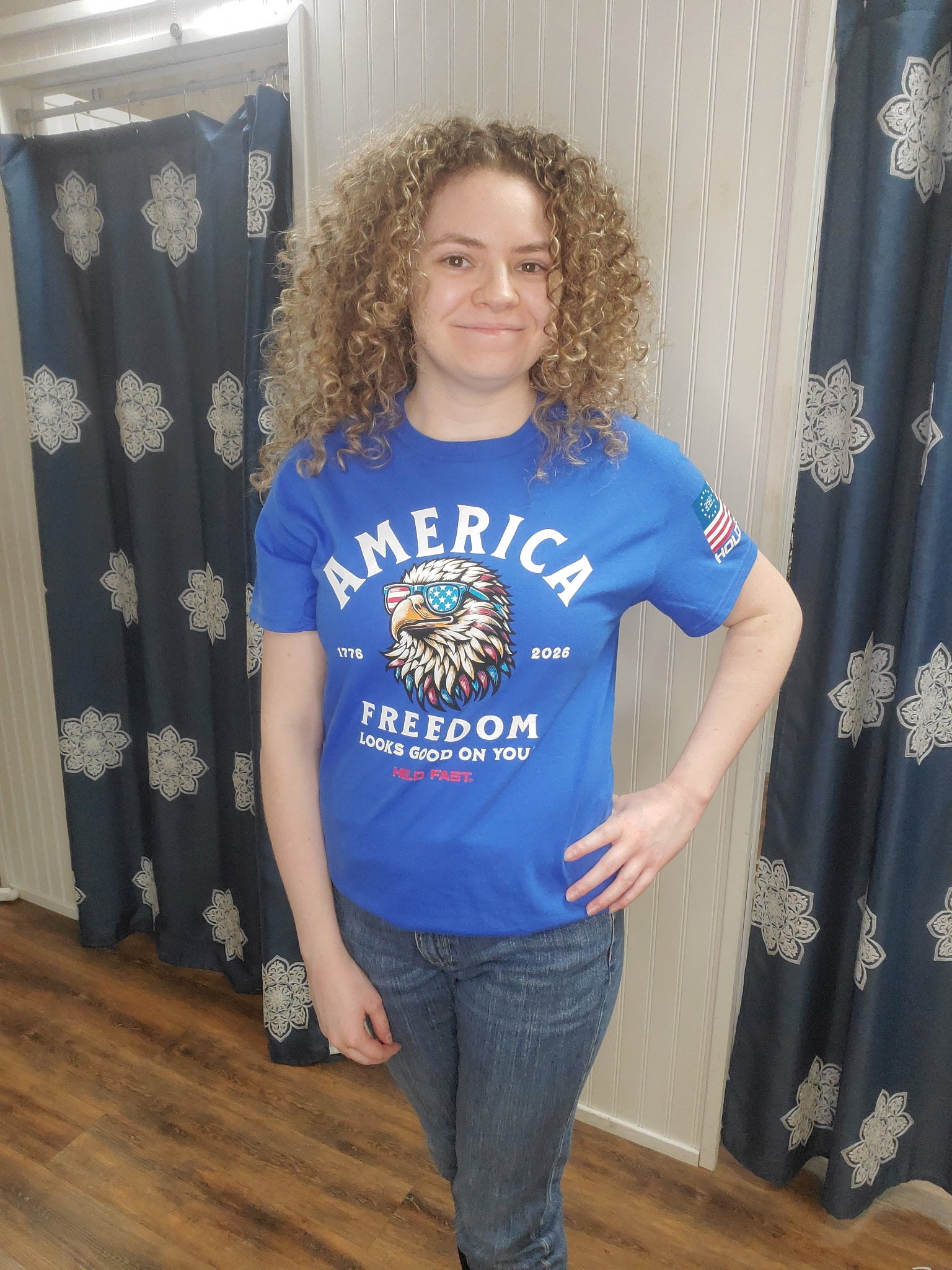 Whether worn for everyday life or patriotic occasions, this shirt makes a bold statement: freedom never goes out of style.