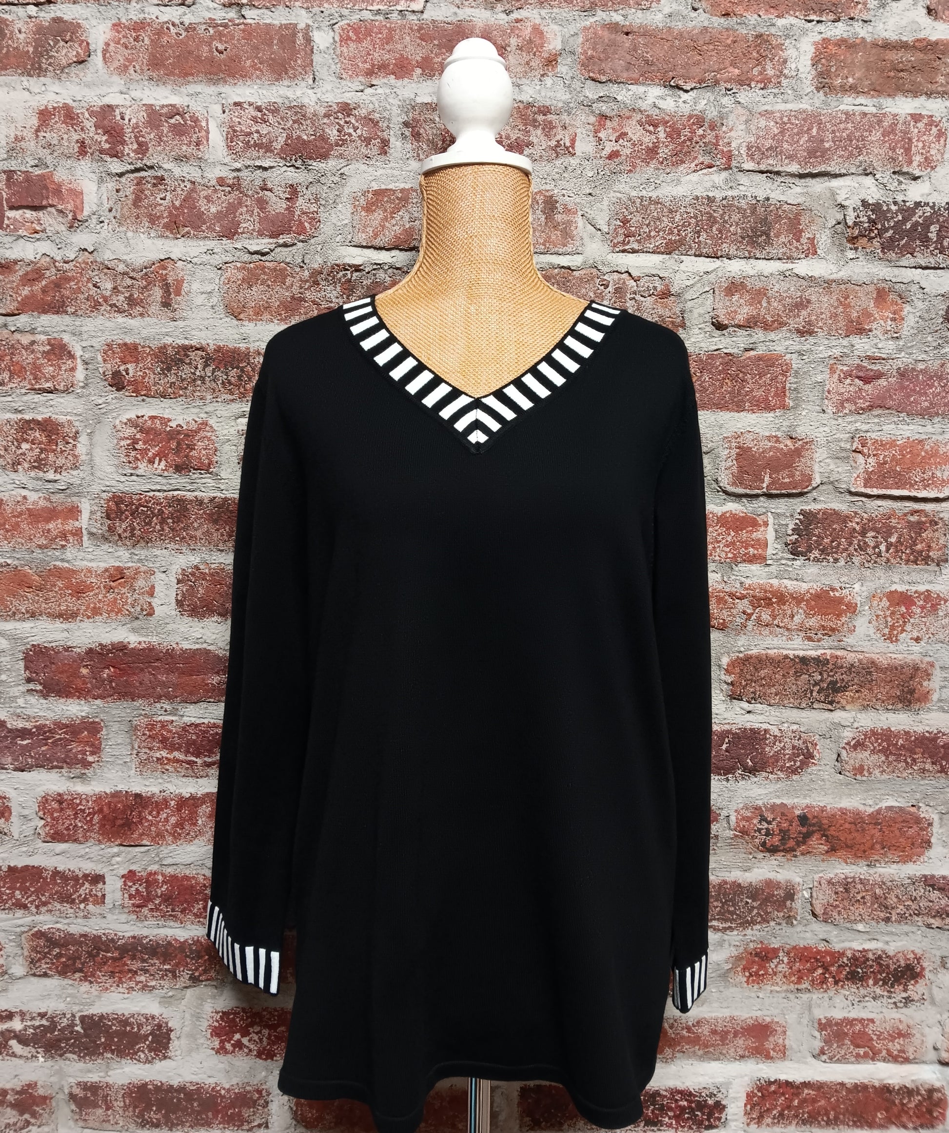 Black Banded Neck And Sleeve Sweater Top