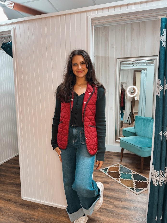 Crimson Quilted Snap Button Vest
