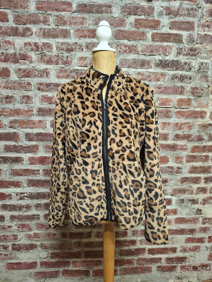 Add a wild touch to your outfit with this playful leopard print zip-up jacket. Featuring convenient pockets and a comfy fit, it’s perfect for layering on cooler days while showing off your fierce style. Let your inner leopard roam free wherever you go!