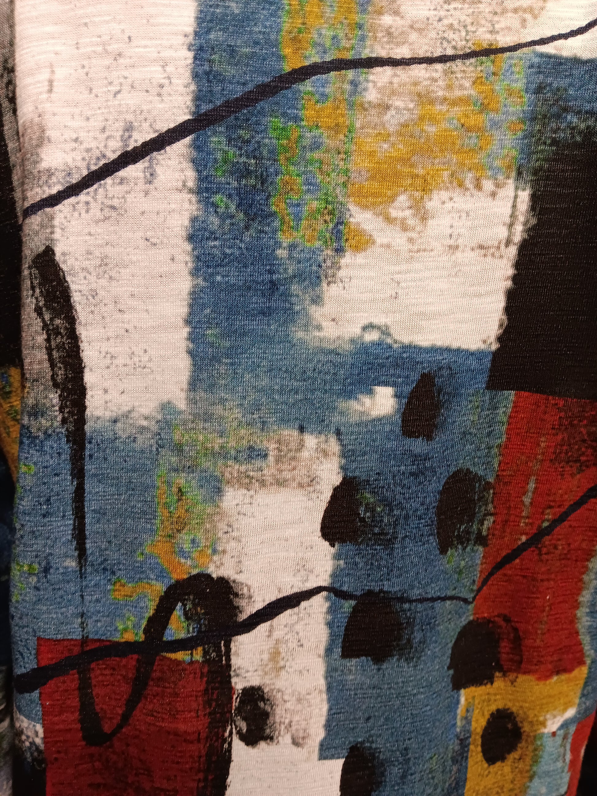 Brighten your day with this Multicolor Abstract Round Neck Painted Top! Lightweight and breezy, it’s perfect for staying comfy while adding a splash of fun color to any outfit. The round neckline keeps things easy and casual, making it your go-to for playful, effortless style.