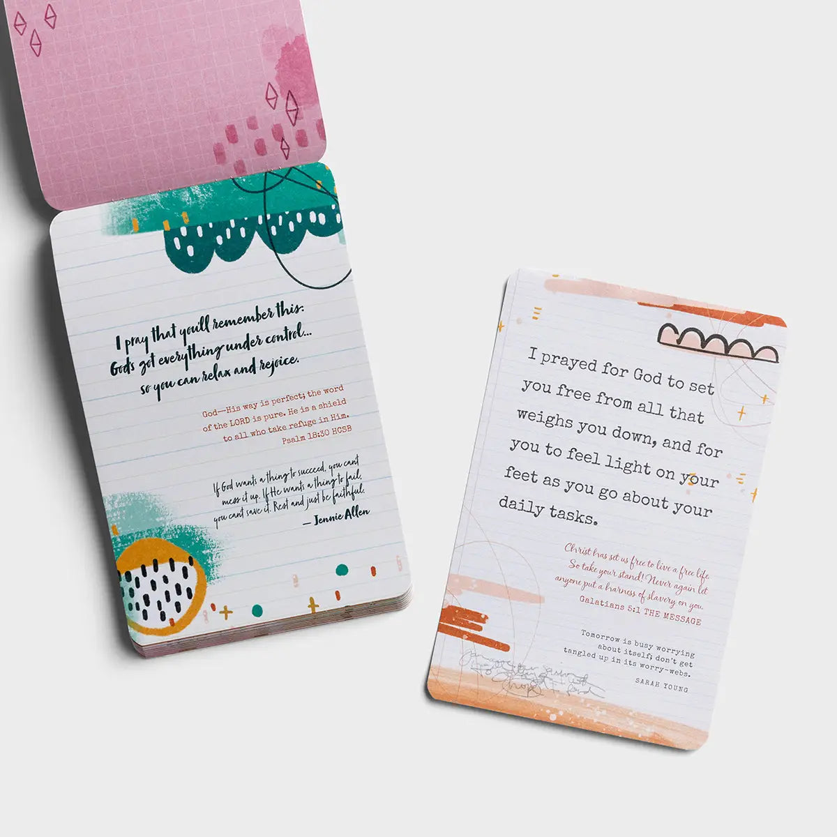 Based on our best-selling devotional journal from the creative mind of Shanna Noel, these pass-along notes are reminders of God’s steadfast promises. Encourage a friend or loved one with the life-changing promises from God’s Word. Add your own message, artwork or encouragement and share a reminder of God’s truth with others! Each page features a prayer that can be a personal statement or a sharable prayer to encourage and bless.